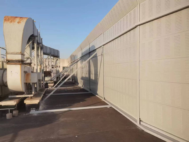 折角型聲屏障主要用于公路、高速公路、冷卻塔噪音治理。分為純隔聲的反射型聲屏障,和吸聲與隔聲相結合的復合型聲屏障,后者是更為有效的隔聲方法。指的是為減輕行車噪聲對附近居民的影響而設置在鐵路和公路側旁的墻式構造物。