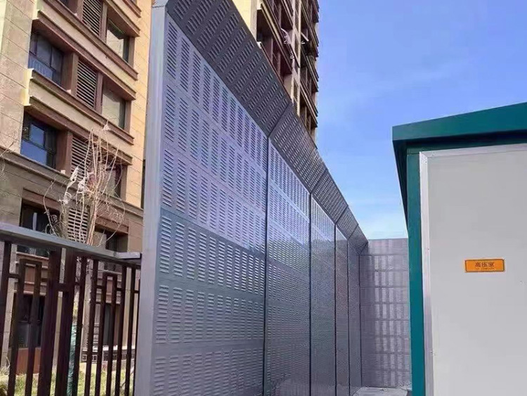 廠區隔音屏(聲屏障)主要由鋼結構立柱和吸隔聲屏板兩部分組成,立柱是隔音墻的主要受力構件,它通過螺栓或焊接固定在墻體或地面預埋鋼板上;吸隔聲板是主要的隔聲吸聲構件,它通過高強彈簧卡子將其固定在H型立柱槽內,形成隔音墻。